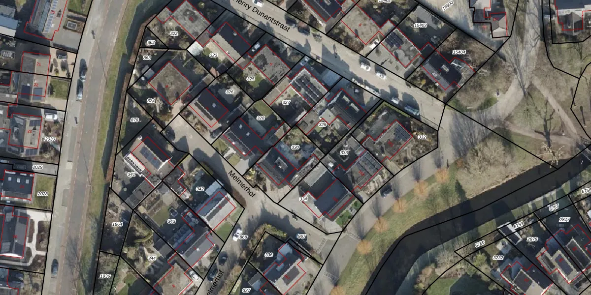 Gebruik de zoekbalk of klik op een perceel om informatie over het perceel te bekijken.