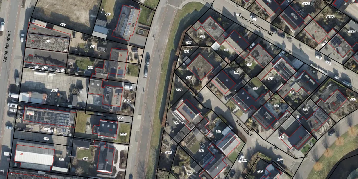 Gebruik de zoekbalk of klik op een perceel om informatie over het perceel te bekijken.