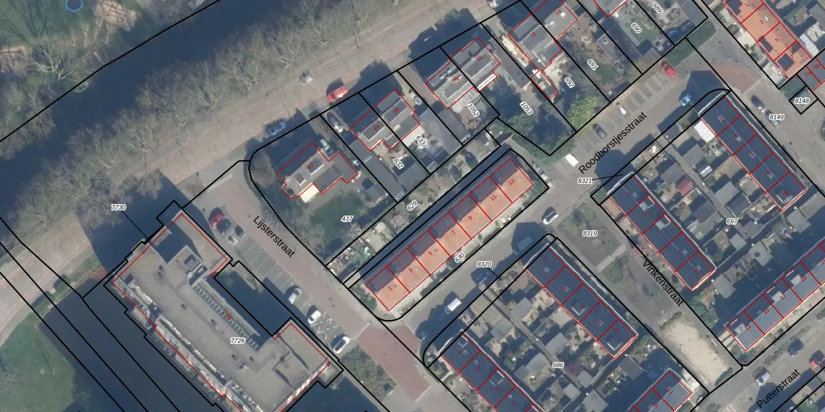 Gebruik de zoekbalk of klik op een perceel om informatie over het perceel te bekijken.