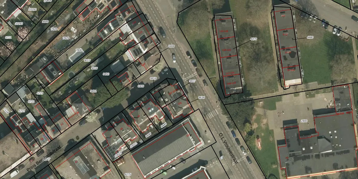 Gebruik de zoekbalk of klik op een perceel om informatie over het perceel te bekijken.
