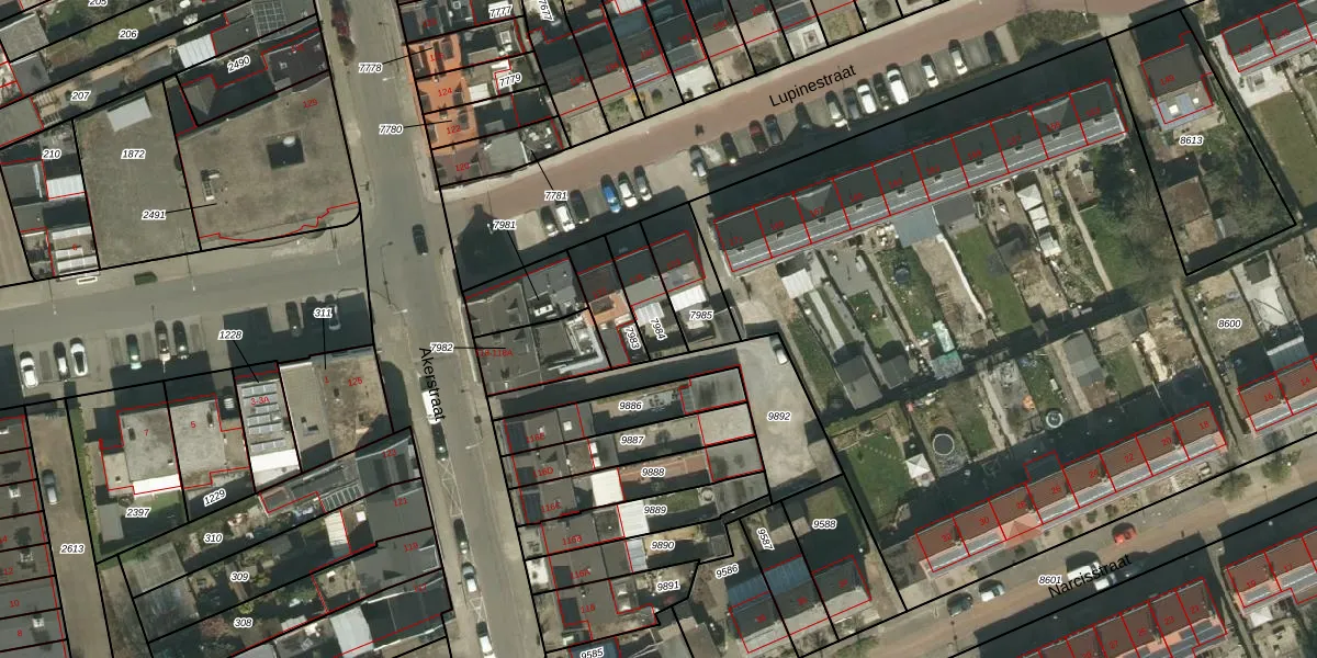 Gebruik de zoekbalk of klik op een perceel om informatie over het perceel te bekijken.
