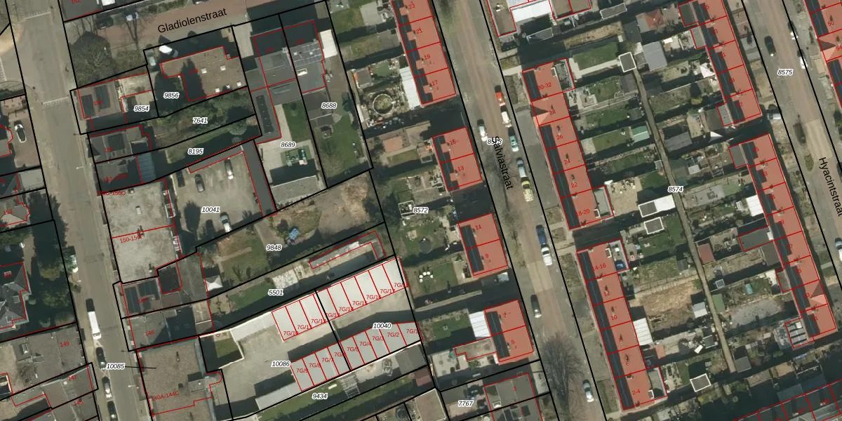 Gebruik de zoekbalk of klik op een perceel om informatie over het perceel te bekijken.