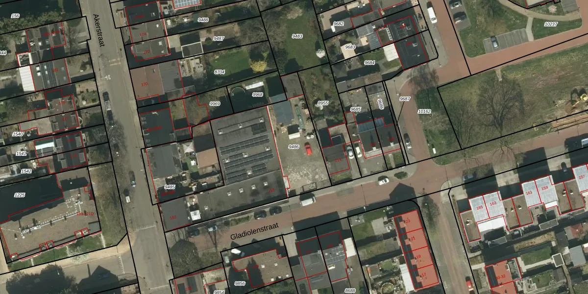 Gebruik de zoekbalk of klik op een perceel om informatie over het perceel te bekijken.
