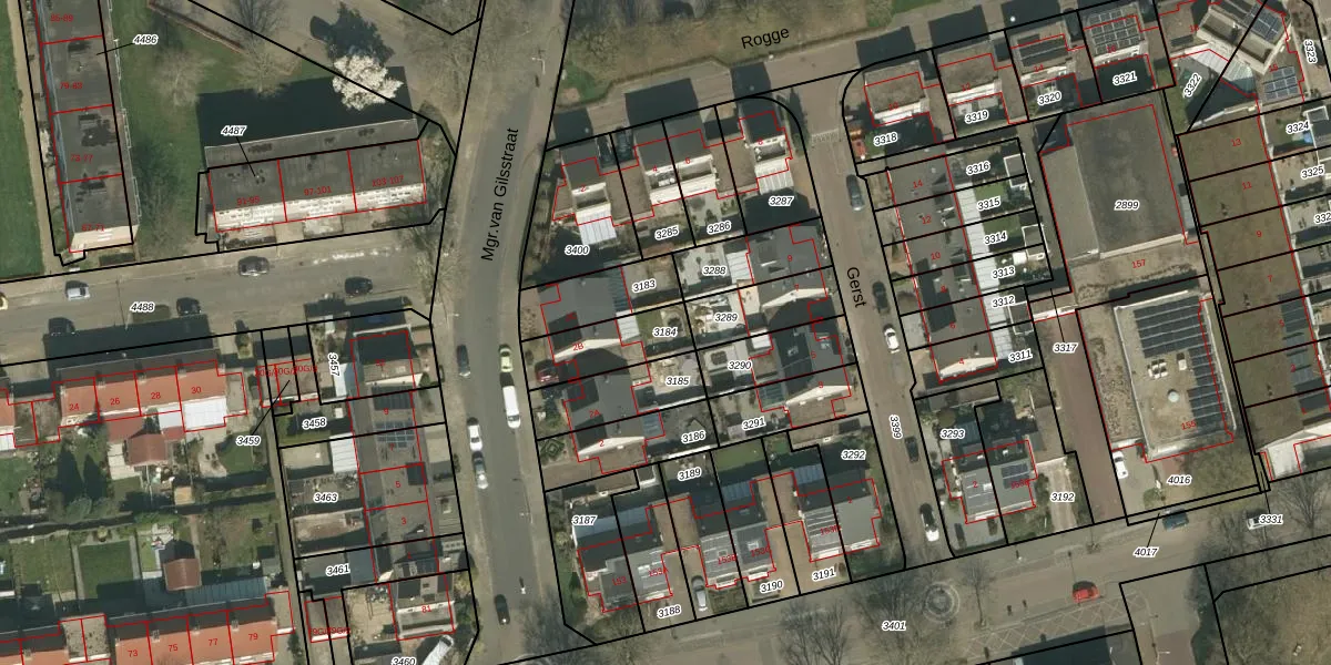 Gebruik de zoekbalk of klik op een perceel om informatie over het perceel te bekijken.