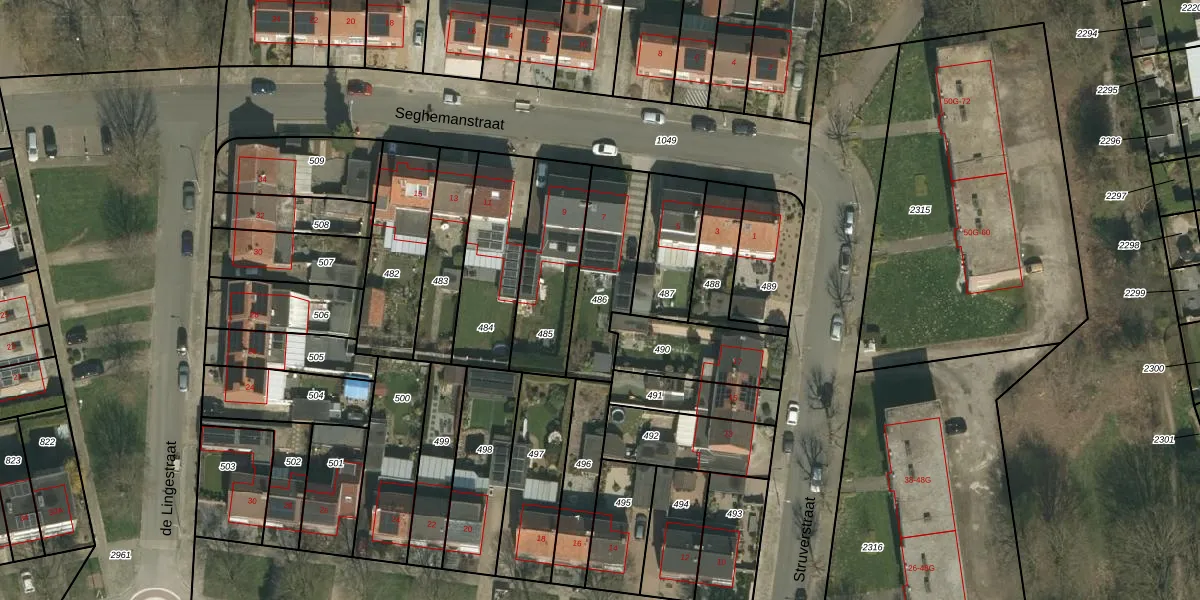 Gebruik de zoekbalk of klik op een perceel om informatie over het perceel te bekijken.