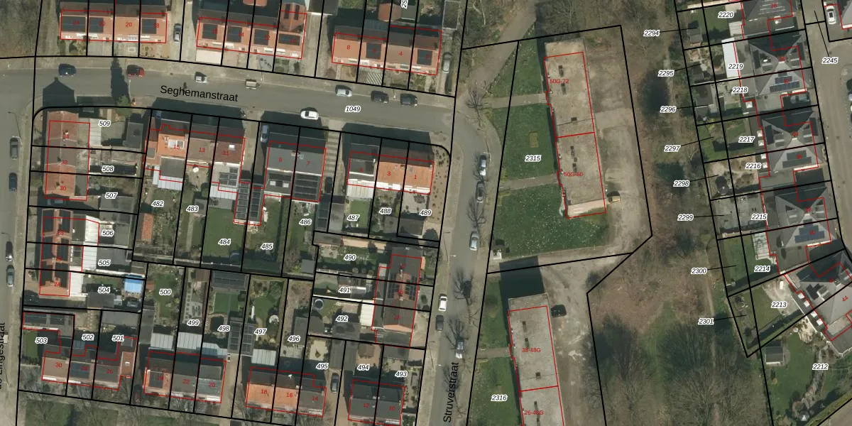 Gebruik de zoekbalk of klik op een perceel om informatie over het perceel te bekijken.
