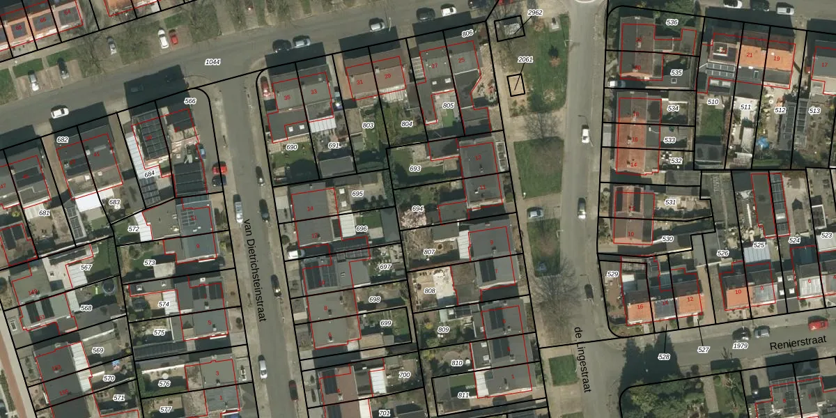 Gebruik de zoekbalk of klik op een perceel om informatie over het perceel te bekijken.