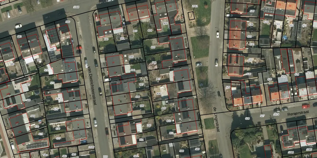 Gebruik de zoekbalk of klik op een perceel om informatie over het perceel te bekijken.