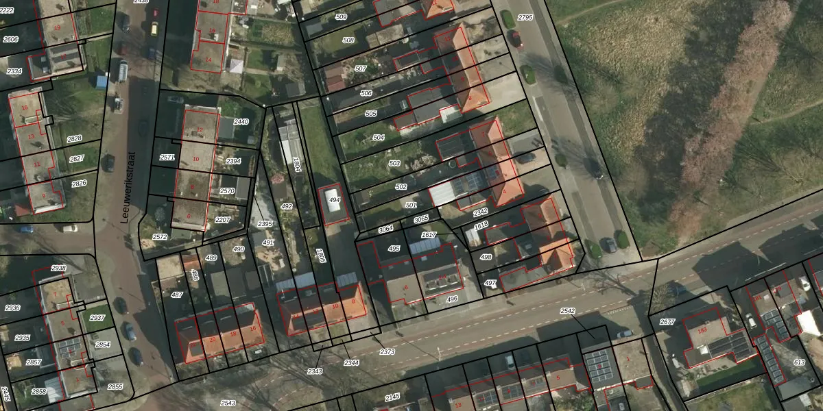 Gebruik de zoekbalk of klik op een perceel om informatie over het perceel te bekijken.