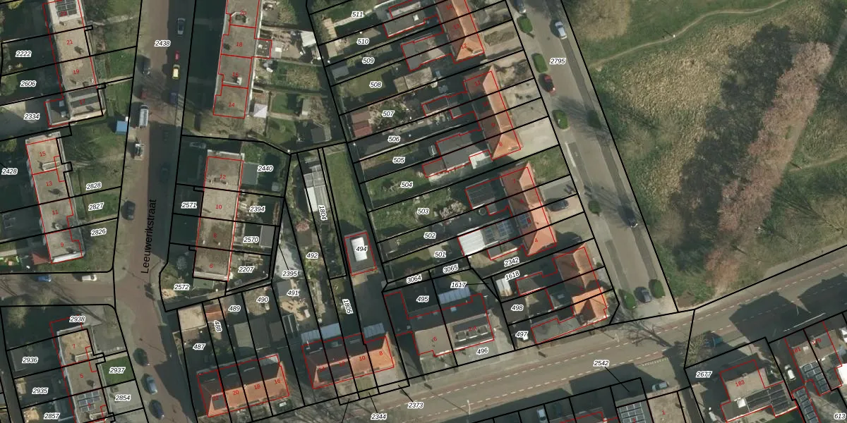 Gebruik de zoekbalk of klik op een perceel om informatie over het perceel te bekijken.