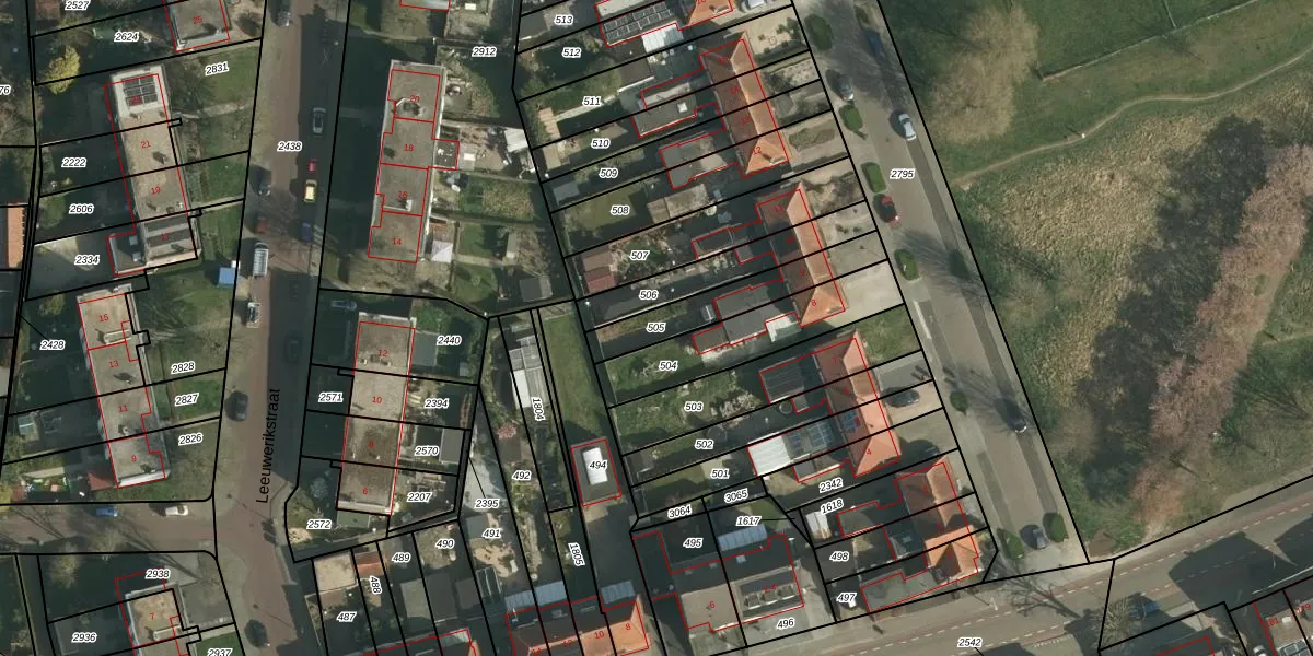 Gebruik de zoekbalk of klik op een perceel om informatie over het perceel te bekijken.