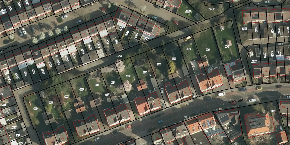 Gebruik de zoekbalk of klik op een perceel om informatie over het perceel te bekijken.