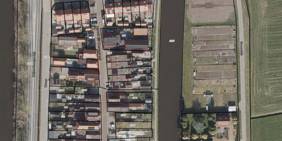 Gebruik de zoekbalk of klik op een perceel om informatie over het perceel te bekijken.