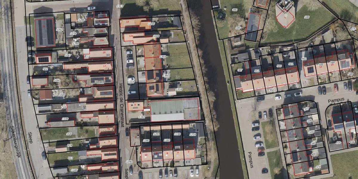 Gebruik de zoekbalk of klik op een perceel om informatie over het perceel te bekijken.