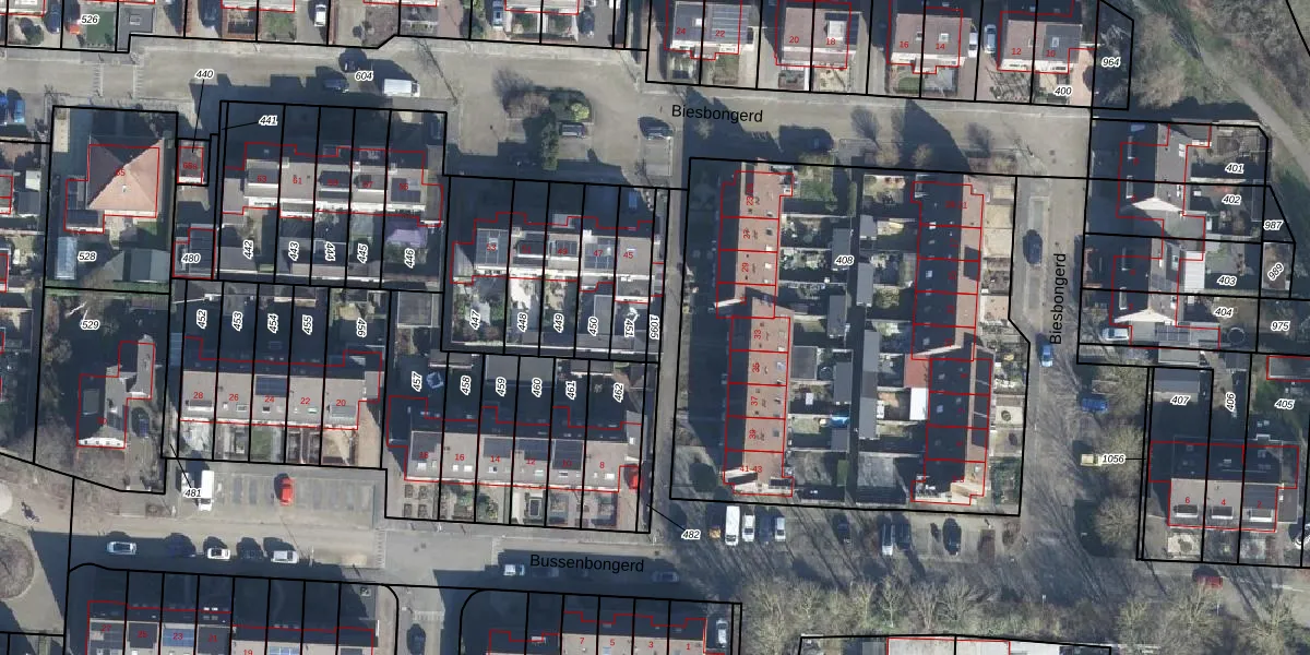 Gebruik de zoekbalk of klik op een perceel om informatie over het perceel te bekijken.