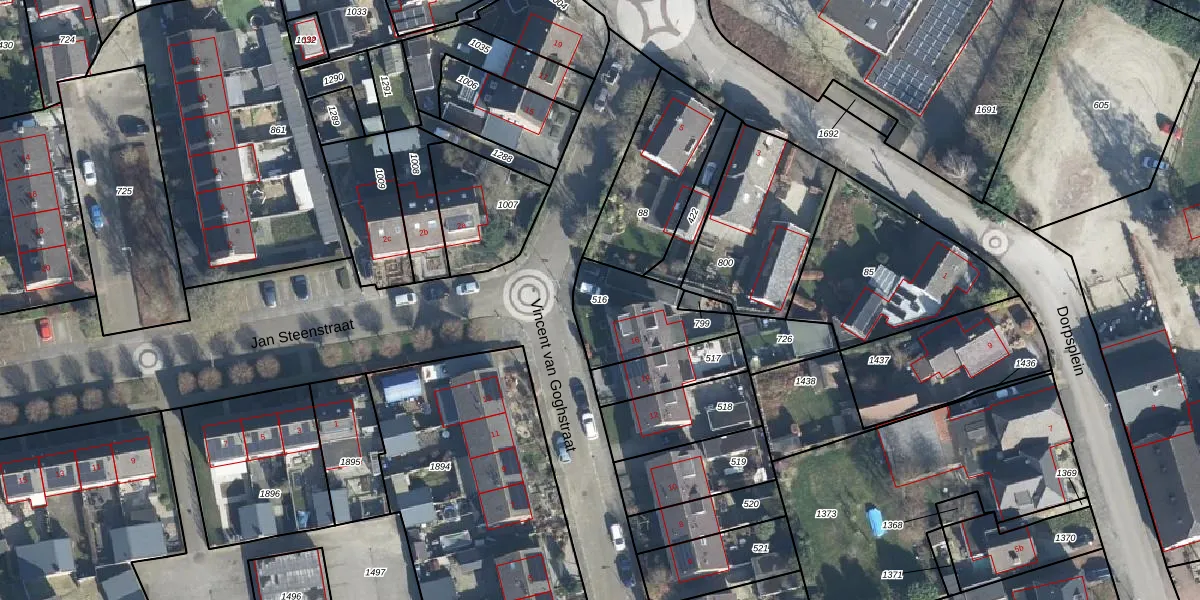 Gebruik de zoekbalk of klik op een perceel om informatie over het perceel te bekijken.