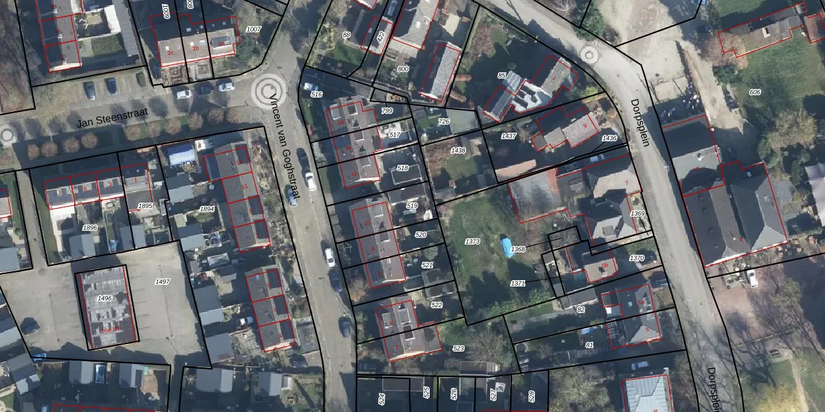 Gebruik de zoekbalk of klik op een perceel om informatie over het perceel te bekijken.