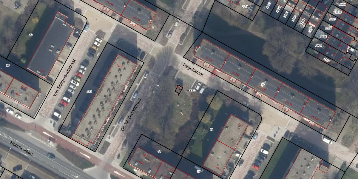 Gebruik de zoekbalk of klik op een perceel om informatie over het perceel te bekijken.