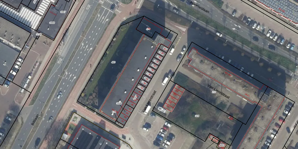 Gebruik de zoekbalk of klik op een perceel om informatie over het perceel te bekijken.