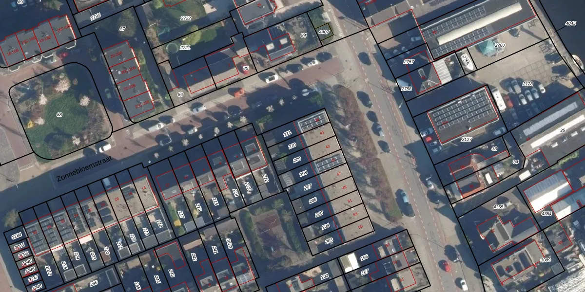 Gebruik de zoekbalk of klik op een perceel om informatie over het perceel te bekijken.