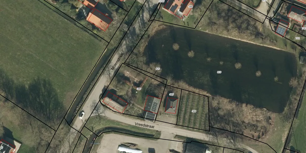 Gebruik de zoekbalk of klik op een perceel om informatie over het perceel te bekijken.