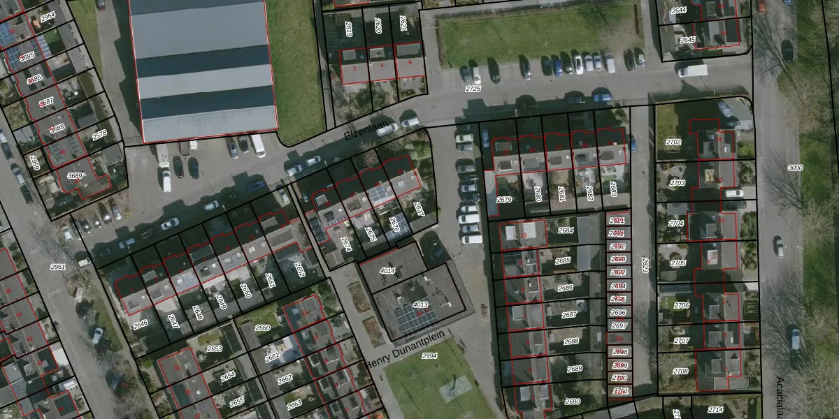 Gebruik de zoekbalk of klik op een perceel om informatie over het perceel te bekijken.