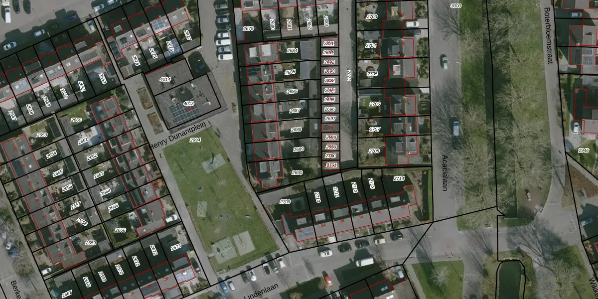 Gebruik de zoekbalk of klik op een perceel om informatie over het perceel te bekijken.