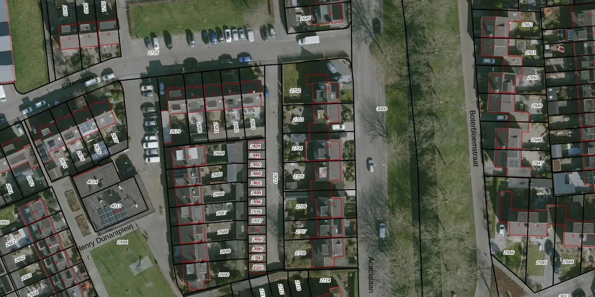 Gebruik de zoekbalk of klik op een perceel om informatie over het perceel te bekijken.