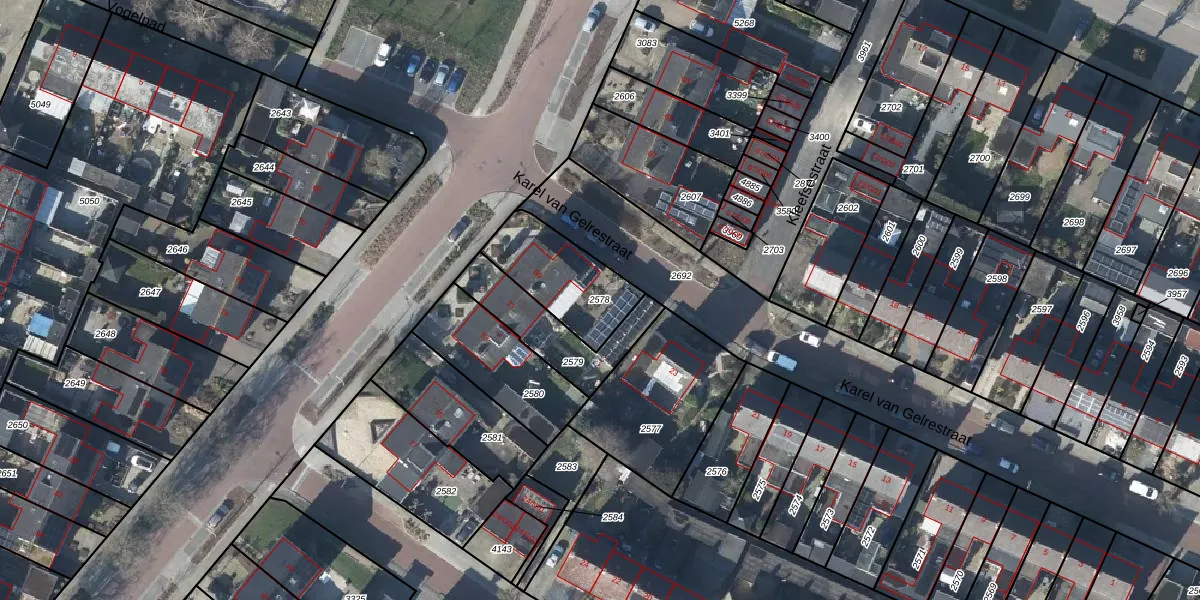 Gebruik de zoekbalk of klik op een perceel om informatie over het perceel te bekijken.
