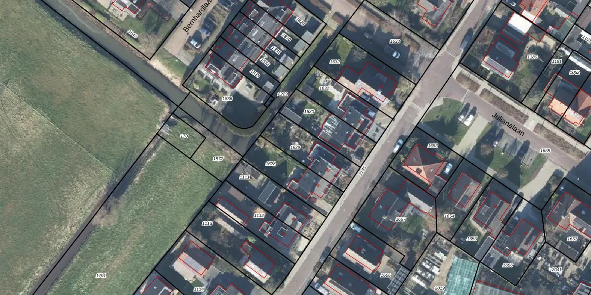 Gebruik de zoekbalk of klik op een perceel om informatie over het perceel te bekijken.