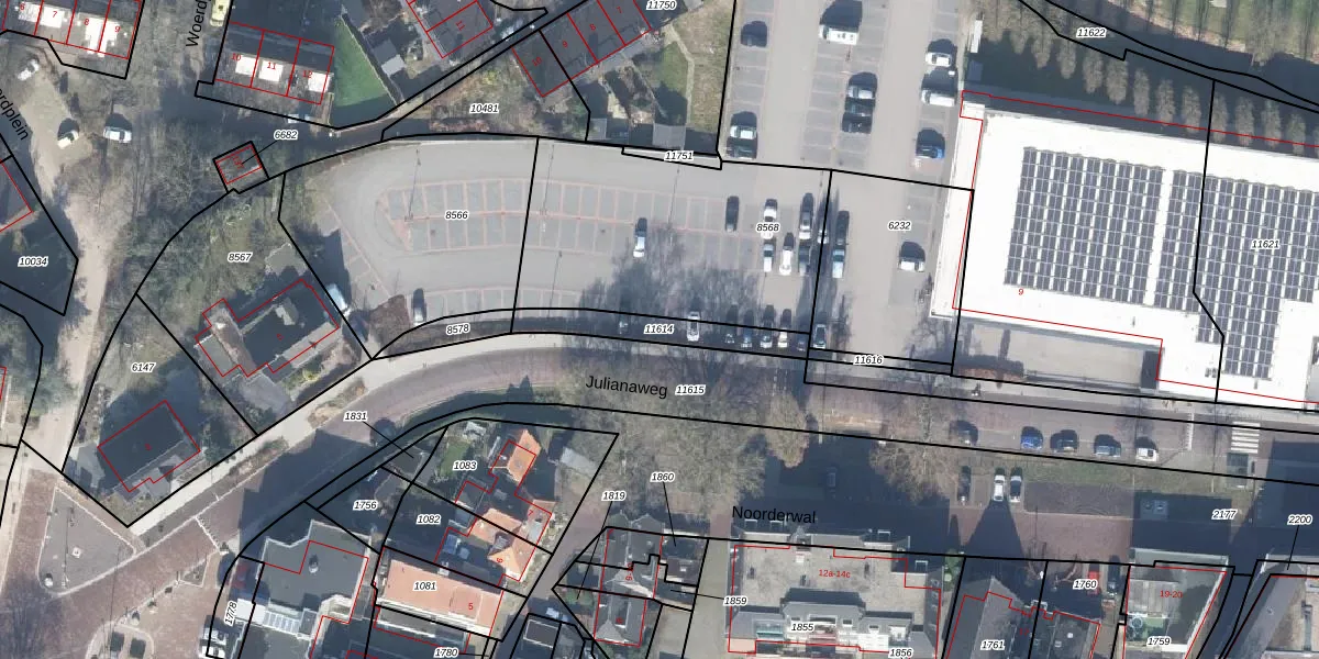 Gebruik de zoekbalk of klik op een perceel om informatie over het perceel te bekijken.
