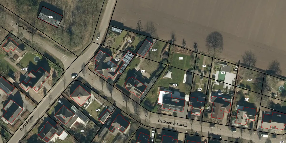 Gebruik de zoekbalk of klik op een perceel om informatie over het perceel te bekijken.