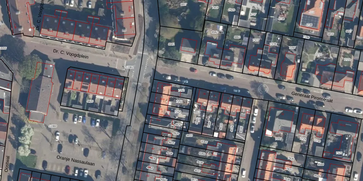 Gebruik de zoekbalk of klik op een perceel om informatie over het perceel te bekijken.