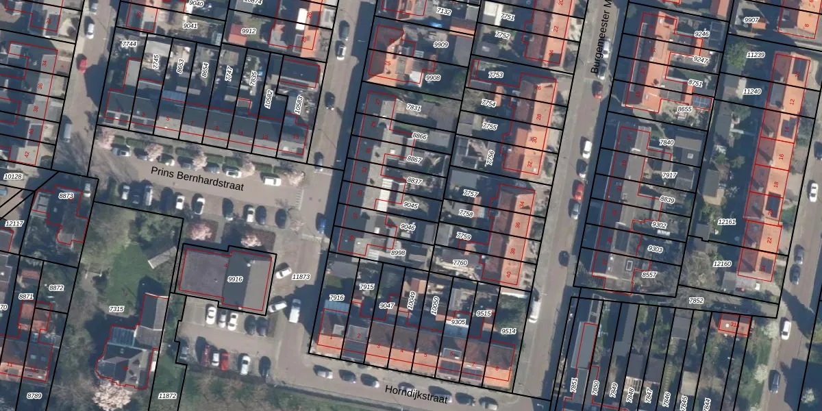 Gebruik de zoekbalk of klik op een perceel om informatie over het perceel te bekijken.
