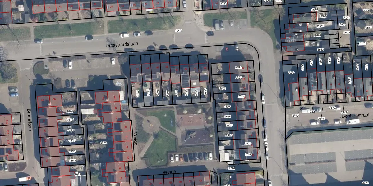 Gebruik de zoekbalk of klik op een perceel om informatie over het perceel te bekijken.