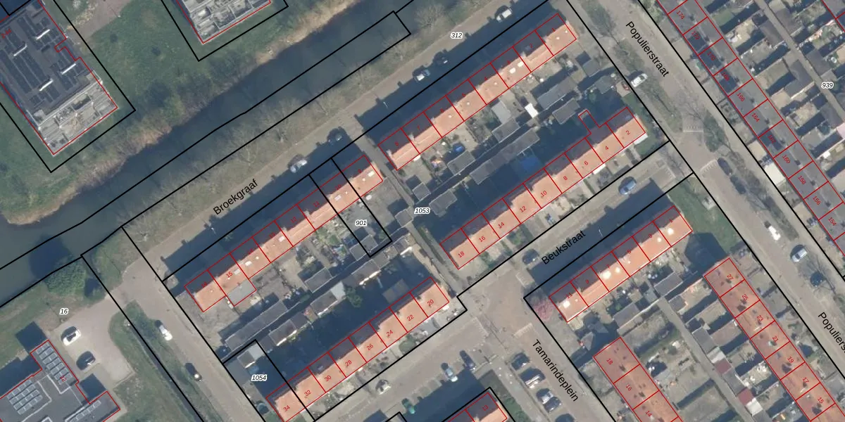 Gebruik de zoekbalk of klik op een perceel om informatie over het perceel te bekijken.
