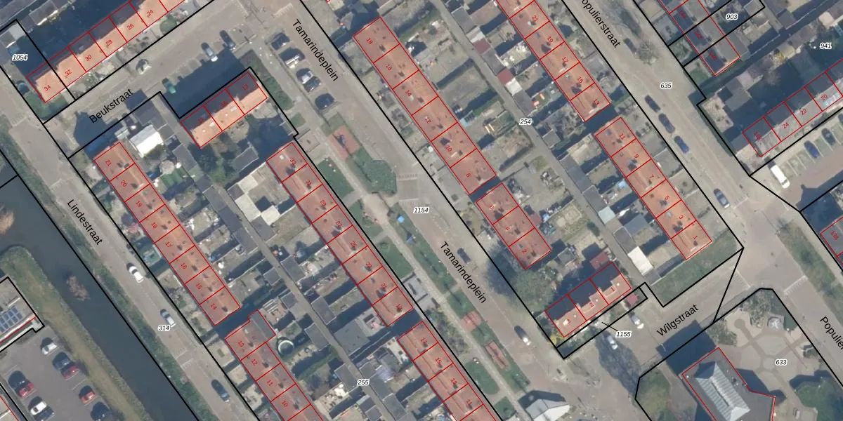 Gebruik de zoekbalk of klik op een perceel om informatie over het perceel te bekijken.
