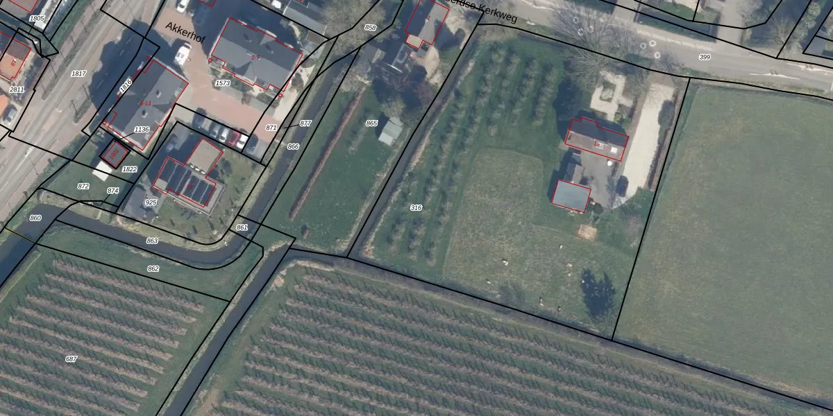 Gebruik de zoekbalk of klik op een perceel om informatie over het perceel te bekijken.