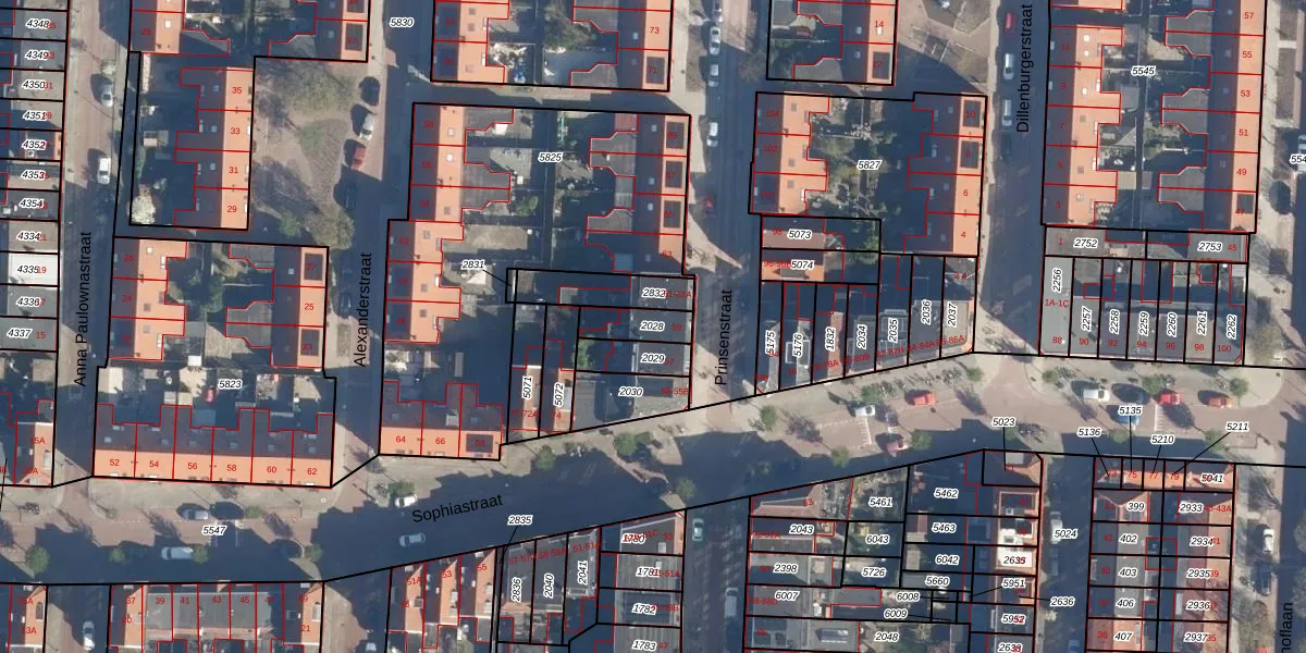 Gebruik de zoekbalk of klik op een perceel om informatie over het perceel te bekijken.
