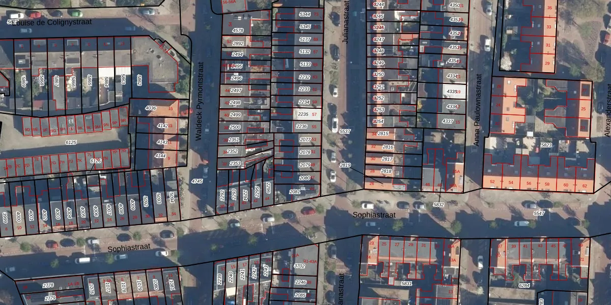 Gebruik de zoekbalk of klik op een perceel om informatie over het perceel te bekijken.