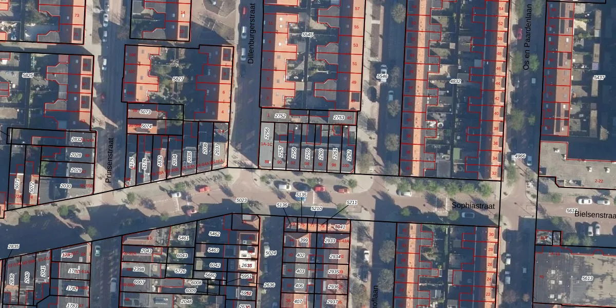 Gebruik de zoekbalk of klik op een perceel om informatie over het perceel te bekijken.