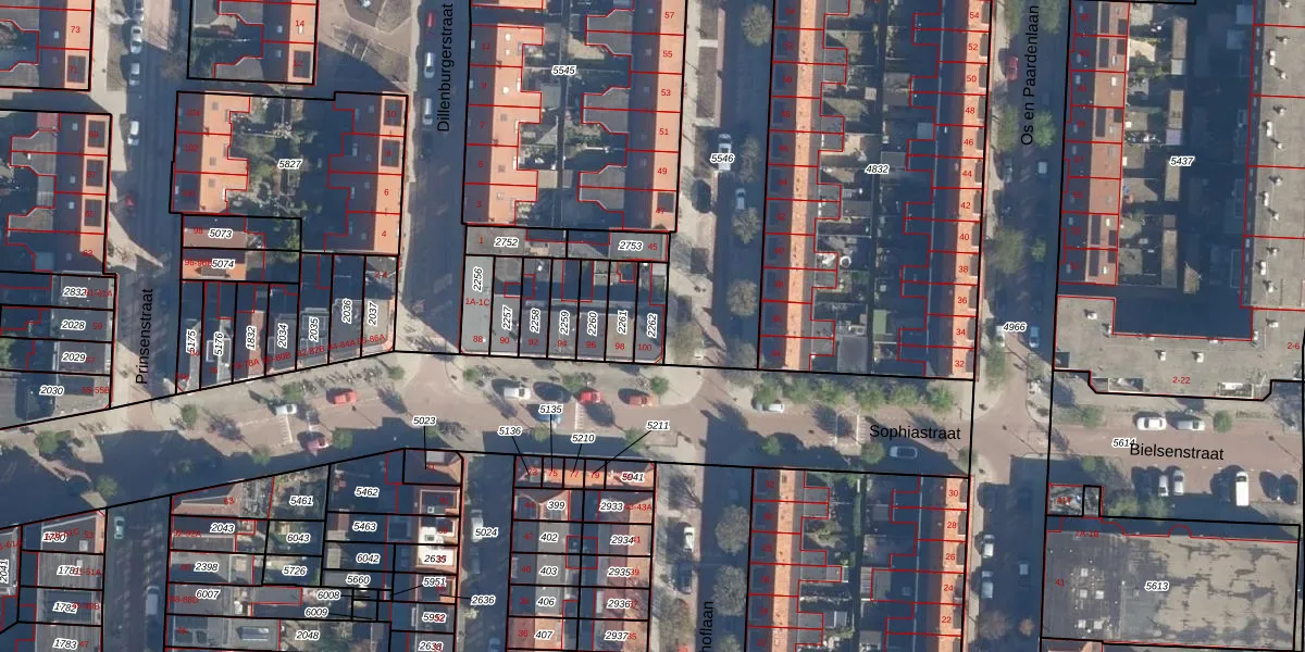 Gebruik de zoekbalk of klik op een perceel om informatie over het perceel te bekijken.