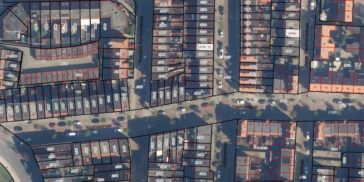 Gebruik de zoekbalk of klik op een perceel om informatie over het perceel te bekijken.