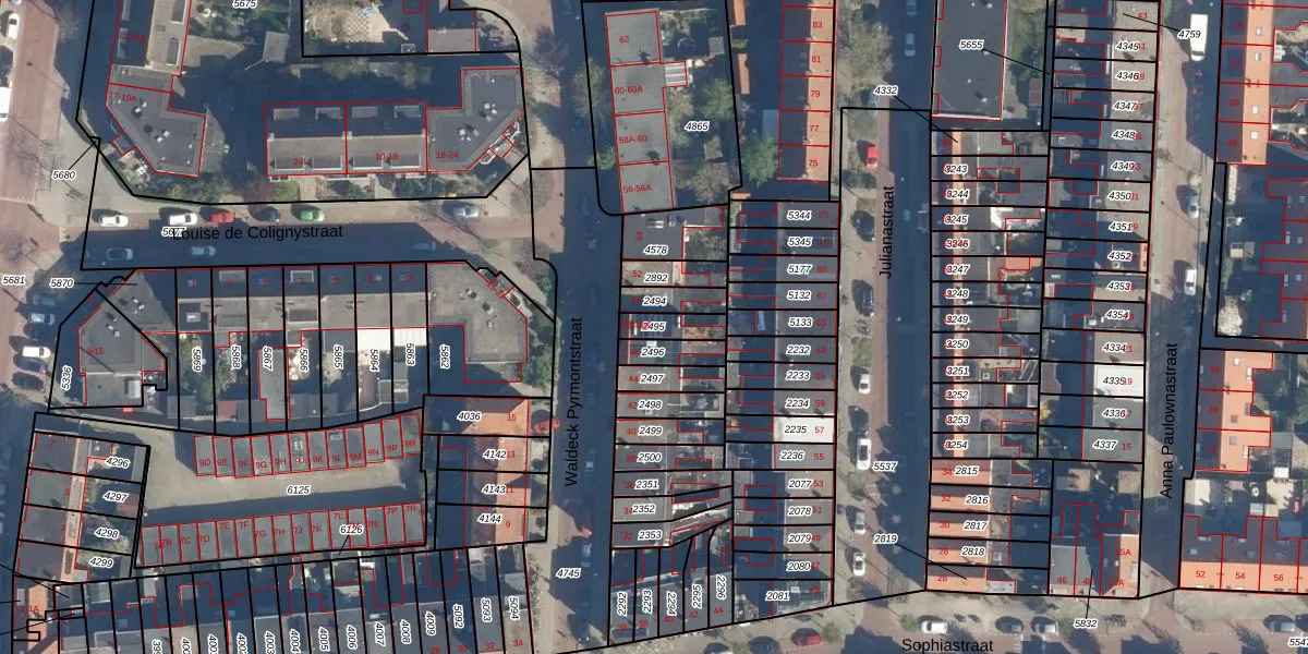 Gebruik de zoekbalk of klik op een perceel om informatie over het perceel te bekijken.
