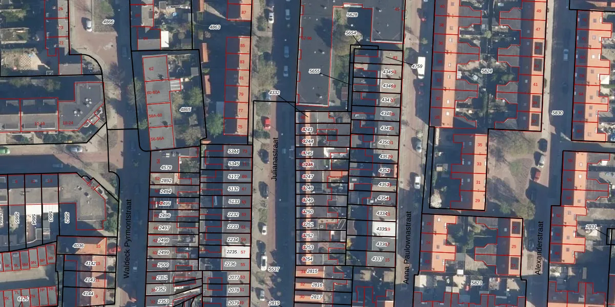 Gebruik de zoekbalk of klik op een perceel om informatie over het perceel te bekijken.