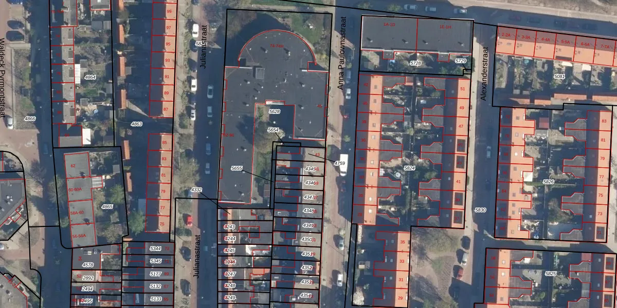 Gebruik de zoekbalk of klik op een perceel om informatie over het perceel te bekijken.