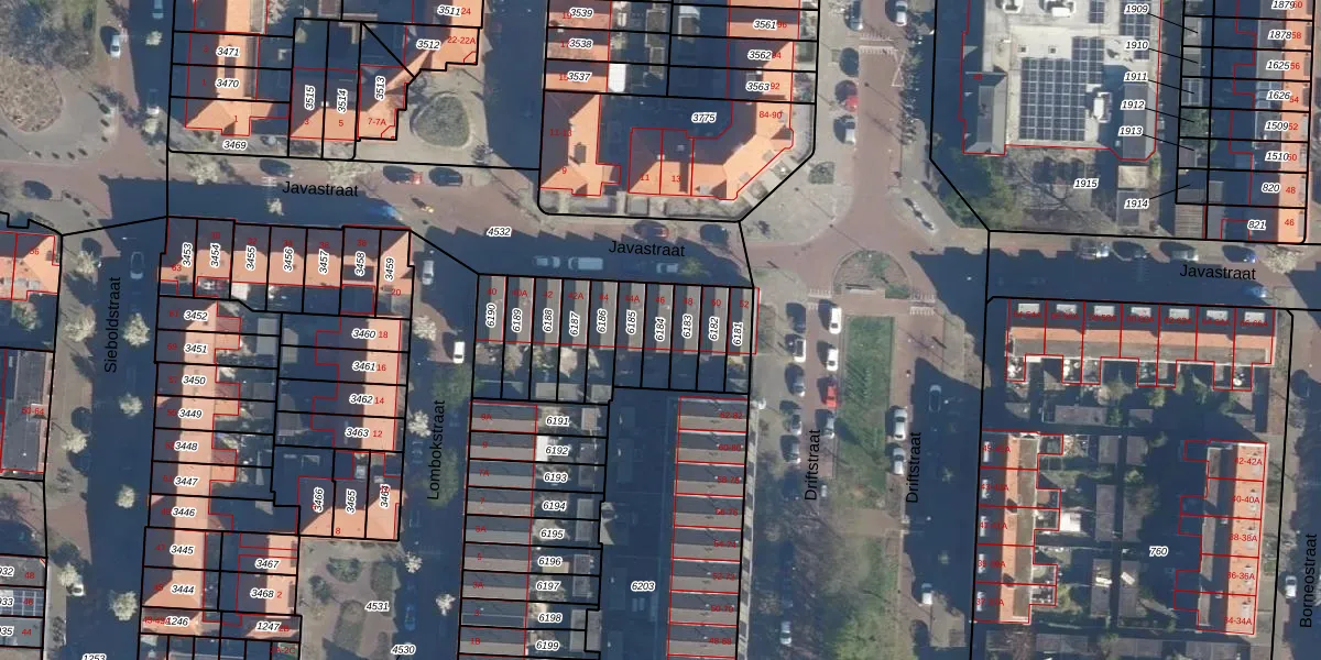 Gebruik de zoekbalk of klik op een perceel om informatie over het perceel te bekijken.