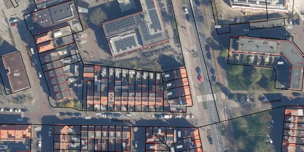 Gebruik de zoekbalk of klik op een perceel om informatie over het perceel te bekijken.