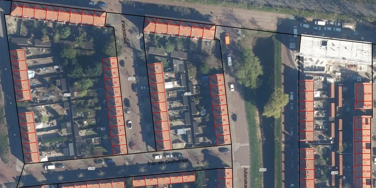 Gebruik de zoekbalk of klik op een perceel om informatie over het perceel te bekijken.