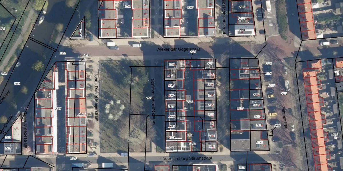 Gebruik de zoekbalk of klik op een perceel om informatie over het perceel te bekijken.